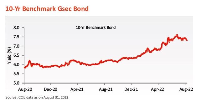 Retail inflation eased to a 5-month low of 6.71% in July 2022 (7.01% in June 2022). Notwithstanding the downtrend in CPI, this is the seventh successive month retail inflation has exceeded the RBI’s upper tolerance limit of 6%. In a bid to check inflation, the Monetary Policy Committee (MPC) of the RBI had hiked the repo rate by 50 basis points to 5.40%.