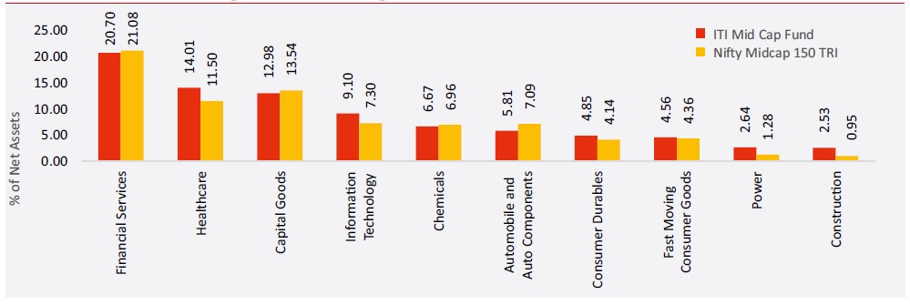 Past performance may or may not be sustained in future and is not a guarantee of any future returns, and should not be used as a basis of comparison with other investments. Different Plans i.e. Regular Plan and Direct Plan under the scheme have different expense structure. Benchmark: Nifty Midcap 150 TRI Additional Benchmark: Nifty 50 TRI. For SIP returns, monthly investment of Rs.10,000 invested on the 1st business day of every month has been considered. CAGR Returns (%) are computed after accounting for the cash flow by using the XIRR method (investment internal rate of return).