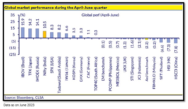 The Nifty was the fourth best performing market in the world during the April-June quarter, notably outperforming the EM (Emerging Markets) benchmark. While due to the rally in equity markets over the last 3 months, the valuations of Indian equity markets have gone up, but it is worthwhile to note that India is still expected to be the highest earnings growth market.