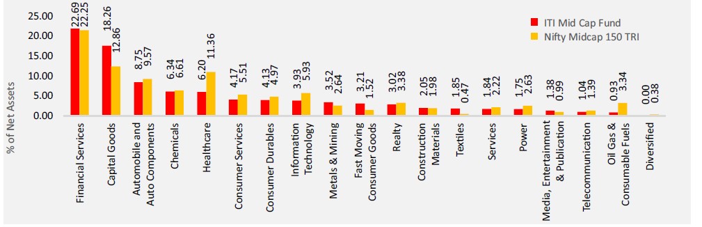 Past performance may or may not be sustained in future. Different Plans i.e. Regular Plan and Direct Plan under the scheme have different expense structure. Benchmark: Nifty Midcap 150 TRI Additional Benchmark: Nifty 50 TRI. For SIP returns, monthly investment of Rs.10,000 invested on the 1st business day of every month has been considered. CAGR Returns (%) are computed after accounting for the cash flow by using the XIRR method (investment internal rate of return).