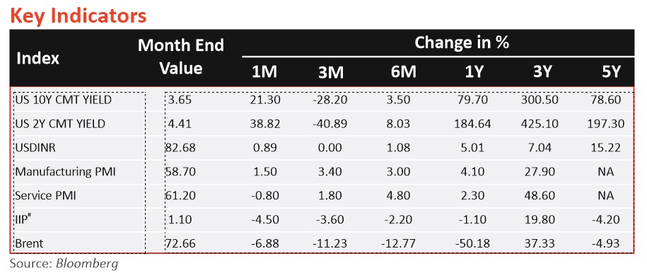 India GDP over the January-March 2023 quarter of FY23 accelerated to 6.1%. GDP expanded to 7.2% over the entire FY23, doing significantly better than estimates. Fourth quarter GDP numbers took experts by surprise mainly on the production side, with agriculture performing better than expected, with backing from exports, contributed by volume growth and weakening of rupee. Better control of oil import expenses has seen a decline in the balance of payments, giving a leg up to GDP growth. Services growth (trade, hotels and financial services) was another factor. While government expenditure towards capital formation continues to be high (8.9%) and left an impact on GDP growth, waning private consumption expenditure (2.8%) continues to remain a concern.