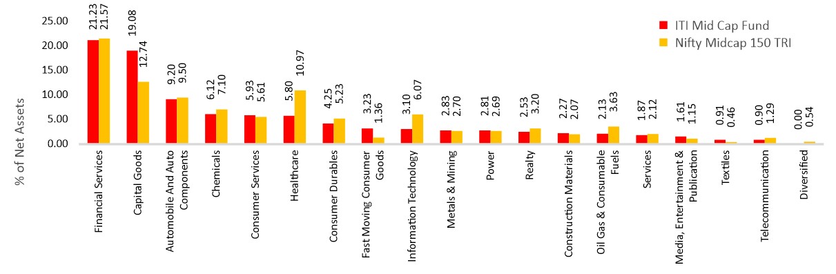 Past performance may or may not be sustained in future. Different Plans i.e. Regular Plan and Direct Plan under the scheme have different expense structure. Benchmark: Nifty Midcap 150 TRI Additional Benchmark: Nifty 50 TRI. Fund Managers: Mr. Rohan Korde (Managing since 29 April 2022) and Mr. Dhimant Shah (Managing since 01 October 2022). Inception date of the scheme (05-Mar-2021). Face Value per unit: Rs. 10.