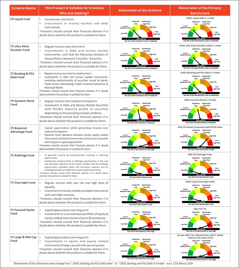 The performance details provided herein are of Growth option under Direct and Regular Plans. Assuming Rs. 10,000 invested as lumpsum 1 year ago as well as since inception. The returns for the respective periods are provided as on last available NAV of 29th November 2024. Returns 1 year and above are Compounded Annualised, below 1 year returns for are Simple Annualised. Load is not taken into consideration for computation of performance. Different plans shall have a different expense structure. The expenses of the Direct Plan under the Scheme will be lower to the extent of the distribution expenses / commission charged to the Other than Direct Plan. The performance data of the scheme(s) managed by the respective Fund manager which has/have not completed 6 months is not provided. *Mr. Rajesh Bhatia is the Fund Manager for overseas investments (Since 08th June 2024) of ITI Multi Cap Fund, ITI Large Cap Fund, ITI Mid Cap Fund, ITI Small Cap Fund, ITI Pharma and Healthcare Fund, ITI Banking and Financial Services Fund, ITI Value Fund, ITI Balanced Advantage Fund, ITI Flexi Cap Fund & ITI Focused Equity Fund. There is no overseas investment at this point of time.