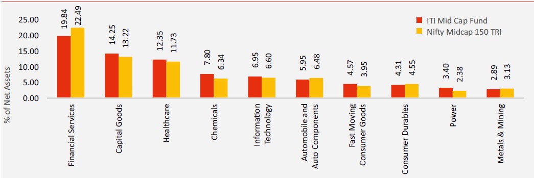 Past performance may or may not be sustained in future and is not a guarantee of any future returns, and should not be used as a basis of comparison with other investments. The performance data for 5 years period has not been provided, since scheme is in existence for less than 5 years. In case, the start / end date of the concerned period is a non-business date (NBD), the NAV of the previous date is considered for computation of returns. Different Plans i.e. Regular Plan and Direct Plan under the scheme have different expense structure. Benchmark: Nifty Midcap 150 TRI Additional Benchmark: Nifty 50 TRI. Fund Managers: Mr. Rohan Korde (Managing since 29-April-2022) and Mr. Dhimant Shah (Managing since 01-October-2022). Inception date of the scheme (05-Mar-2021). Face Value per unit: Rs. 10. ITI Mid Cap Fund NAV as on April 30, 2025: Rs. 19.5335 (Regular Plan Growth Option), Rs. 21.2621 (Direct Plan Growth Option)