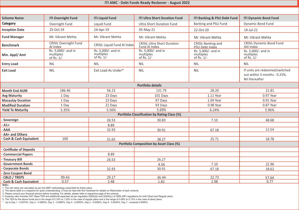 ITI AMC - Debt Funds Ready Reckoner - August 2022