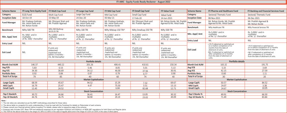 ITI AMC - Equity Funds Ready Reckoner - August 2022