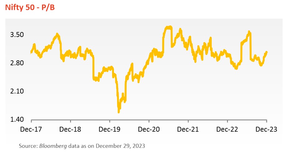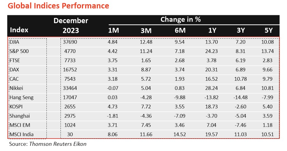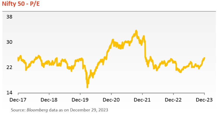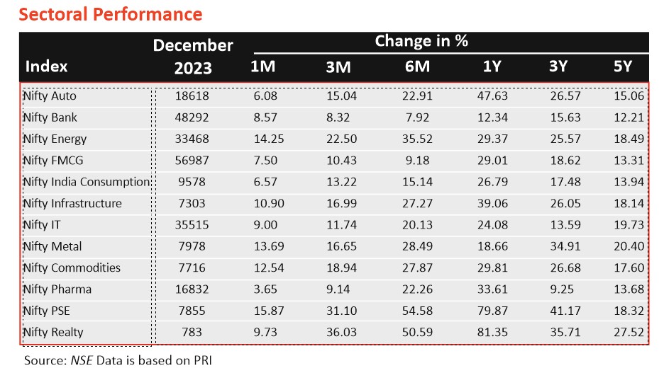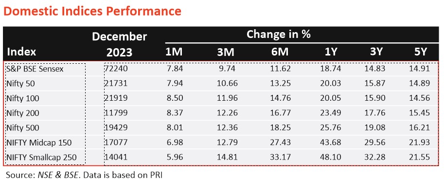 December 2023 saw significant gains in large-cap stocks fuelling the rally alongside mid-caps, while small caps took a breather. Sustained trend of profit growth, capital expenditures, and stable liquidity were key themes during the month. FIIs bought net equities worth Rs 66,135 crores in December 2023, with DiIs logging in net purchase of 12,942 crores.