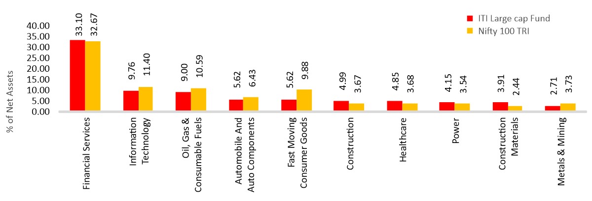 Past performance may or may not be sustained in future and is not a guarantee of future returns. Different Plans i.e. Regular Plan and Direct Plan under the scheme have different expense structure. Benchmark: Nifty 100 TRI Additional Benchmark: Nifty 50 TRI. For SIP returns, monthly investment of Rs.10,000 invested on the 1st business day of every month has been considered. CAGR Returns (%) are computed after accounting for the cash flow by using the XIRR method (investment internal rate of return).