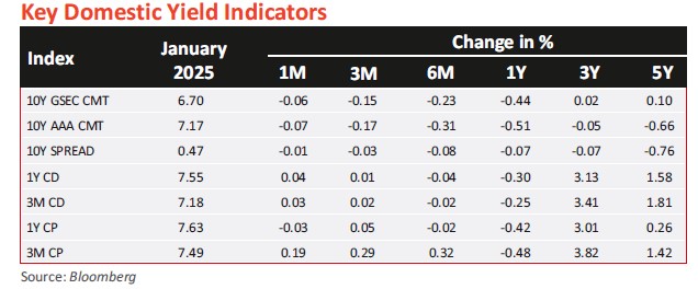 - Consumer Price Index (CPI) inflation eased to 5.2% in December 2024 from 5.5% in November 2024, though it remained above the 5% mark for the fourth consecutive month. The decline was largely attributed to lower food prices, particularly in vegetables, key staples, and pulses. With inflation showing signs of moderation and economic growth slowing, attention is now on the RBI's stance on potential rate cuts.