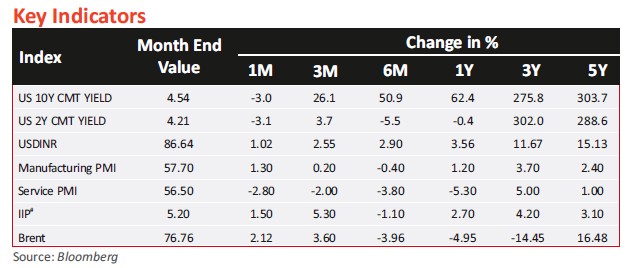 - Industrial production (IIP) saw a notable increase in November 2024, reaching a six-month peak of 5.2%, up from 3.7% in October. Growth was fueled by a robust manufacturing sector (5.8%), along with steady expansions in mining (1.9%) and electricity (4.4%). The core sector grew by 4.3%, with infrastructure goods output hitting a 13-month high of 10%, supported by higher government spending. Consumer durables recorded the highest growth at 13.1%, whereas non-durables saw a modest rise of 0.6%. The increase was largely driven by festive demand and a favourable base effect, although overall momentum remained subdued, as sequential industrial production declined by 1.2%.