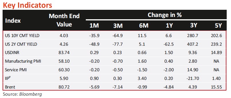 - Industrial output (IIP) expanded 5.9% YoY in May 2024 vis-à-vis 5% growth in previous month. Mining rose 6.6%, electricity 13.7%, and manufacturing 4.6%.