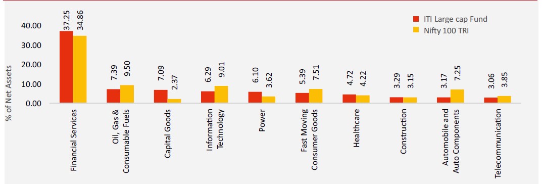 Past performance may or may not be sustained in future and is not a guarantee of any future returns, and should not be used as a basis of comparison with other investments. The performance data for 5 years period has not been provided, since scheme is in existence for less than 5 years. In case, the start / end date of the concerned period is a non-business date (NBD), the NAV of the previous date is considered for computation of returns. Different Plans i.e. Regular Plan and Direct Plan under the scheme have different expense structure. Benchmark: Nifty 100 TRI Additional Benchmark: Nifty 50 TRI. Fund Managers: Mr. Alok Ranjan (Managing Since 04-Nov-2024), Mr Rohan Korde (Managing Since 29-April-2022). Inception date of the scheme (24-Dec-20). Face Value per unit: Rs. 10. ITI Large Cap Fund NAV as on July 31, 2025: Rs. 17.4314 (Regular Growth Option), Rs. 19.1565 (Direct Growth Option)