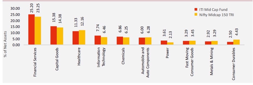 Past performance may or may not be sustained in future and is not a guarantee of any future returns, and should not be used as a basis of comparison with other investments. The performance data for 5 years period has not been provided, since scheme is in existence for less than 5 years. In case, the start / end date of the concerned period is a non-business date (NBD), the NAV of the previous date is considered for computation of returns. Different Plans i.e. Regular Plan and Direct Plan under the scheme have different expense structure. Benchmark: Nifty Midcap 150 TRI Additional Benchmark: Nifty 50 TRI. Fund Managers: Mr. Rohan Korde (Managing since 29-April-2022) and Mr. Dhimant Shah (Managing since 01-October-2022). Inception date of the scheme (05-Mar-2021). Face Value per unit: Rs. 10.ITI Mid Cap Fund NAV as on July 31, 2025: Rs. 20.8288 (Regular Growth Option), Rs. 22.7651 (Direct Growth Option)