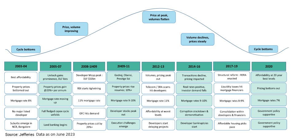 - Real Estate “upcycle” continues: As per the historical trends, the Indian Real Estate Cycle tends to move in “upcycles and downcycles” lasting over a period of 8 years each. Post 2020: Cycle has begun and we are just in the 3rd year of upcycle