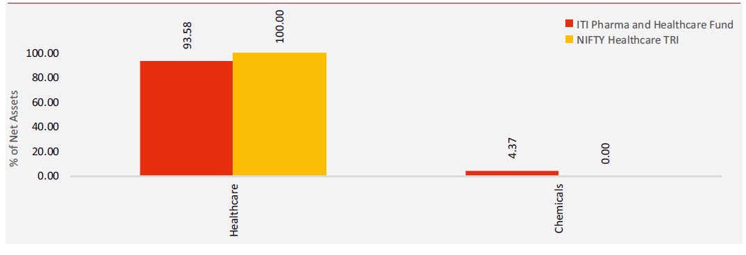 Past performance may or may not be sustained in future and is not a guarantee of any future returns, and should not be used as a basis of comparison with other investments. Different Plans i.e. Regular Plan and Direct Plan under the scheme have different expense structure. Benchmark: Nifty Healthcare TRI Additional Benchmark: Nifty 50 TRI. For SIP returns, monthly investment of Rs.10,000 invested on the 1st business day of every month has been considered. CAGR Returns (%) are computed after accounting for the cash flow by using the XIRR method (investment internal rate of return).