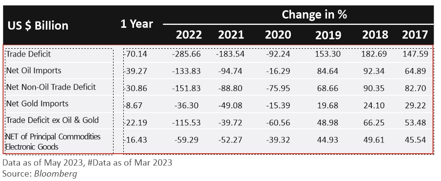 India GDP over the January-March 2023 quarter of FY23 accelerated to 6.1%. GDP expanded to 7.2% over the entire FY23, doing significantly better than estimates. Fourth quarter GDP numbers took experts by surprise mainly on the production side, with agriculture performing better than expected, with backing from exports, contributed by volume growth and weakening of rupee. Better control of oil import expenses has seen a decline in the balance of payments, giving a leg up to GDP growth. Services growth (trade, hotels and financial services) was another factor. While government expenditure towards capital formation continues to be high (8.9%) and left an impact on GDP growth, waning private consumption expenditure (2.8%) continues to remain a concern.