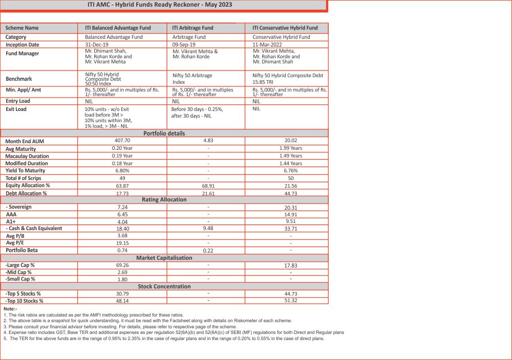 ITI AMC - Hybrid Funds Ready Reckoner - May 2023