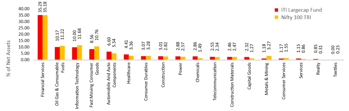 Past performance may or may not be sustained in future. Different Plans i.e. Regular Plan and Direct Plan under the scheme have different expense structure. Benchmark: Nifty 100 TRI Additional Benchmark: Nifty 50 TRI. For SIP returns, monthly investment of Rs.10,000 invested on the 1st business day of every month has been considered. CAGR Returns (%) are computed after accounting for the cash flow by using the XIRR method (investment internal rate of return).