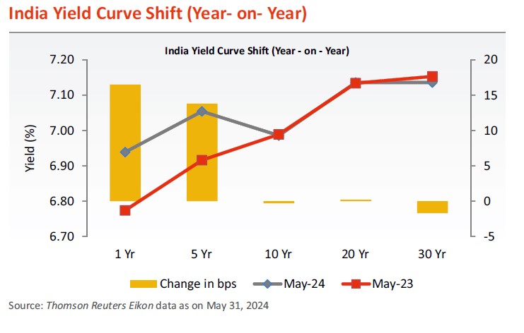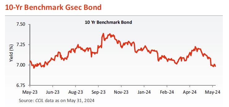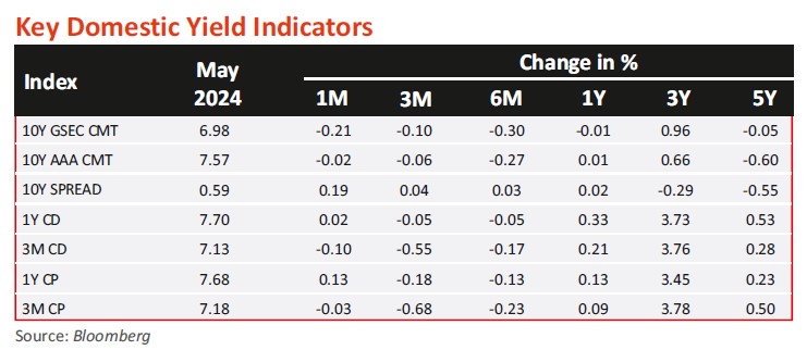 • GST collections for May 2024 were Rs 1.73 lakh crore (Rs 2.1 lakh crore in April 2024), up 10% year-on-year, driven by a 15.3% rise in domestic transactions despite a 4.3% drop in imports. Next month’s GST collections might stagnate due to summer heatwaves and lower auto sales.