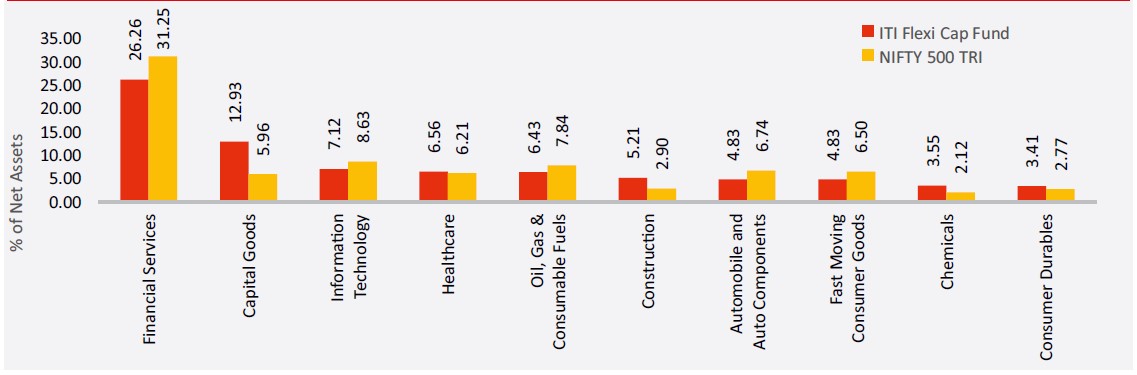 Past performance may or may not be sustained in future and is not a guarantee of any future returns, and should not be used as a basis of comparison with other investments. The performance data for 3 years period has not been provided, since scheme is in existence for less than 3 years. In case, the start / end date of the concerned period is a non-business date (NBD), the NAV of the previous date is considered for computation of returns. Different Plans i.e. Regular Plan and Direct Plan under the scheme have different expense structure. Benchmark: Nifty 500 TRI Additional Benchmark: Nifty 50 TRI. Fund Managers: Mr. Dhimant Shah (Managing since 17-Feb-2023) and Mr. Rohan Korde (Managing since 17-Feb-2023). Inception date of the scheme (17-Feb-23). Face Value per unit: Rs. 10. ITI Flexi Cap Fund NAV as on May 30, 2025: Rs. 17.4500 (Regular Growth Option), Rs. 18.1854 (Direct Growth Option)