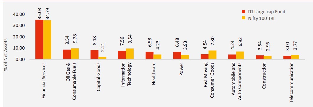 Past performance may or may not be sustained in future and is not a guarantee of any future returns, and should not be used as a basis of comparison with other investments. The performance data for 5 years period has not been provided, since scheme is in existence for less than 5 years. In case, the start / end date of the concerned period is a non-business date (NBD), the NAV of the previous date is considered for computation of returns. Different Plans i.e. Regular Plan and Direct Plan under the scheme have different expense structure. Benchmark: Nifty 100 TRI Additional Benchmark: Nifty 50 TRI. Fund Managers: Mr. Alok Ranjan (Managing Since 04-Nov-2024), Mr Rohan Korde (Managing Since 29-April-2022). Inception date of the scheme (24-Dec-20). Face Value per unit: Rs. 10. ITI Large Cap Fund NAV as on May 30, 2025: Rs. 17.4606 (Regular Growth Option), Rs. 19.1320 (Direct Growth Option)
