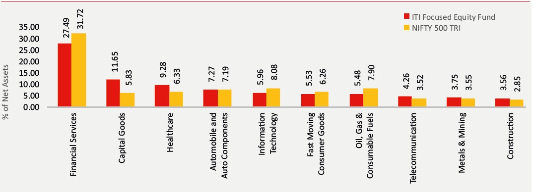 Past performance may or may not be sustained in future and is not a guarantee of any future returns, and should not be used as a basis of comparison with other investments. The performance data for 3 years period has not been provided, since scheme is in existence for less than 3 years. In case, the start / end date of the concerned period is a non-business date (NBD), the NAV of the previous date is considered for computation of returns. Different Plans i.e. Regular Plan and Direct Plan under the scheme have different expense structure. Benchmark: Nifty 500 TRI Additional Benchmark: Nifty 50 TRI. Fund Managers: Mr. Dhimant Shah (Managing since 19-June-2023) and Mr. Rohan Korde (Managing since 19-June-2023). Inception date of the scheme is (19-June-23). Face Value per unit: Rs. 10. ITI Focused Equity Fund NAV as on November 28, 2025: Rs. 15.6808 (Regular Growth Option), Rs. 16.4134 (Direct Growth Option)