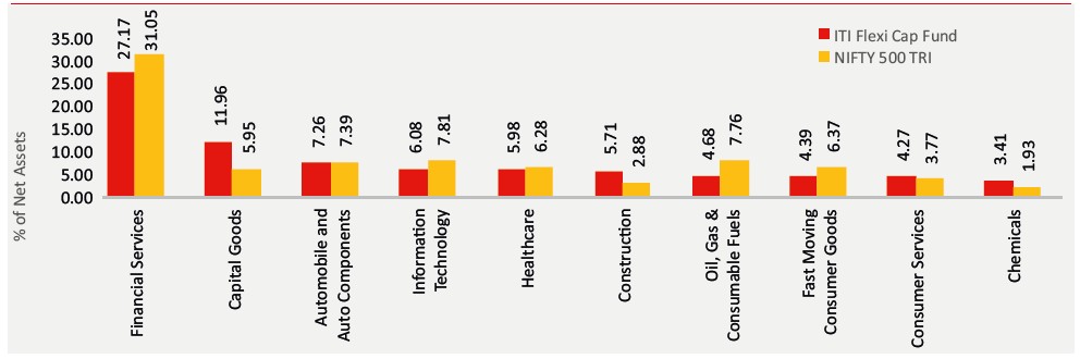 Past performance may or may not be sustained in future and is not a guarantee of any future returns, and should not be used as a basis of comparison with other investments. The performance data for 3 years period has not been provided, since scheme is in existence for less than 3 years. In case, the start / end date of the concerned period is a non-business date (NBD), the NAV of the previous date is considered for computation of returns. Different Plans i.e. Regular Plan and Direct Plan under the scheme have different expense structure. Benchmark: Nifty 500 TRI Additional Benchmark: Nifty 50 TRI. Fund Managers: Mr. Dhimant Shah (Managing since 17-Feb-2023) and Mr. Rohan Korde (Managing since 17-Feb-2023). Inception date of the scheme (17-Feb-23). Face Value per unit: Rs. 10. ITI Flexi Cap Fund NAV as on October 31, 2025: Rs. 18.1488 (Regular Growth Option), Rs. 19.0306 (Direct Growth Option)