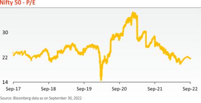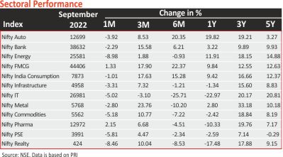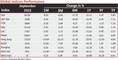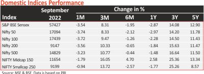September 2022 saw the frontline indices S&P BSE Sensex and Nifty 50 dipping 3.54% and 3.74% respectively, while S&P BSE Mid-Cap and S&P BSE Small-Cap corrected by 2.18% and 0.69% respectively.