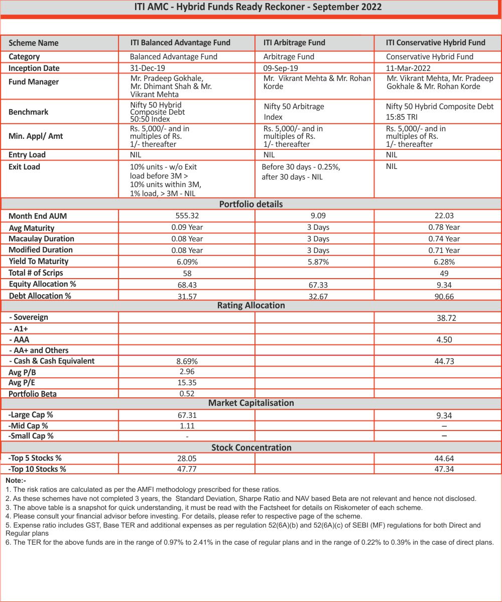 ITI AMC - Hybrid Funds Ready Reckoner -